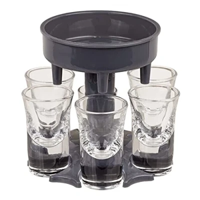 Out fo The Blue Schnapps Carousel Pouring aid with 6 Glasses, Shot Glass, Shooter Dark Grey
