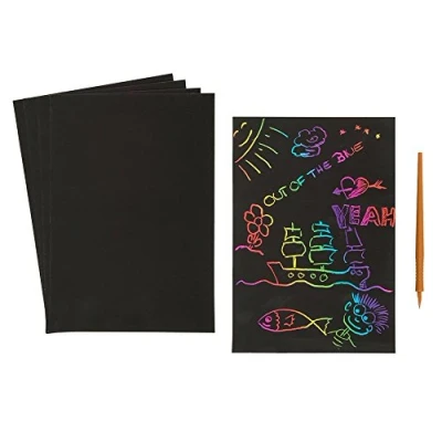 Out of the blue Colourful Scratch Paper, Approx. 21 x 14.5 cm, Pack 5 with 1 Plastic Scratching Stick in polybag