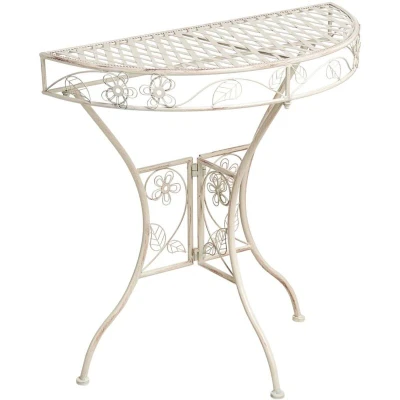 AmazonGarden table in vintage style Compact, half-round size for convenience Flowery pattern and stylish finish Made from durable iron Quick and easy assembly