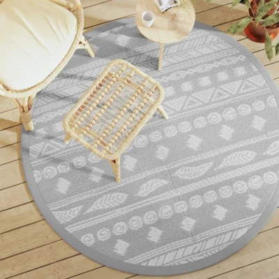 ManoManoGeneral description This trendy outdoor carpet makes a great decorative addition to your outdoor living space! Place it in your seating area on your balcony, terrace, or patio to instantly make it feel more homely. Technical specifications Colour: Grey Material: Polypropylene (PP) Diameter: 160 cm Pattern: Double layer jacquard Range name: ARAKIL Assembly required: No SKU: 368531 Usage Long-lasting and UV-resistant: Made of Polypropylene (PP), this rug is tightly woven for durability, portability, and low maintenance. It is UV-resistant, preventing fading or sun damage. Reversible design: Designed to be used on both sides, allowing you to match the decor to your liking. When one side has a stain or you want a fresh look, simply flip it over. Easy to clean: Shake and wipe with a damp cloth, or rinse with a hose and air dry. Portable and easy to store: Lightweight and can be easily folded for carrying and storage when not in use. Wide applications: Suitable for indoor and outdoor use,