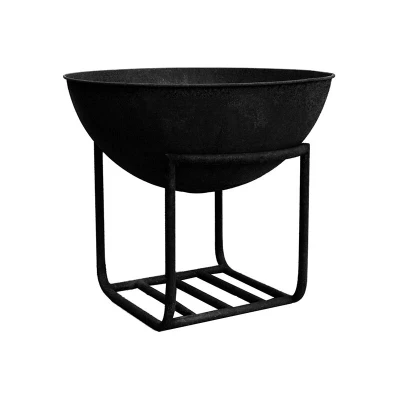 Outdoor Cast Iron Firebowl on Stand Metal L55.5 x W55.5 H43.5 cm Black