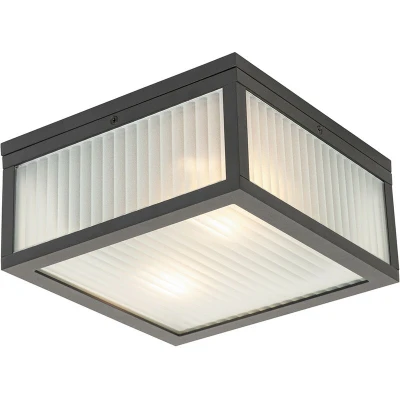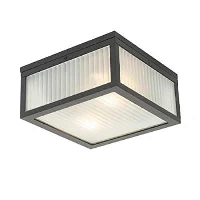 General description The QAZQA Outdoor Ceiling Light Black with Ribbed Glass 2-Light IP44 - Charlois is an elegant lighting solution designed to enhance the atmosphere of your outdoor spaces. Made from durable aluminum and glass, this stylish fixture features a sleek black finish and is perfect for modern gardens, balconies, or terraces. With two light points, it provides ample illumination while adding a touch of sophistication. Technical specifications Dimensions: Length 24 cm, Width 24 cm, Height 11.5 cm Bulb holder: E27 Max wattage: 2 x 40 W Voltage: 230 V Connecting voltage: 220V/230V Protection class: IP44 Dimmable: Yes (dimmer not included) Lightsource: Exclusive Compatibility and accessories Suitable for LED bulbs Light sources are not included and must be ordered separately Usage This outdoor ceiling light is ideal for various living spaces, including bathrooms and outdoor areas. Its dimmable feature allows you to adjust the brightness according to your preference, creating