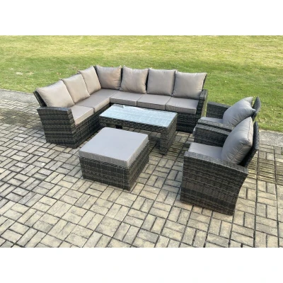 Outdoor Furniture Garden Dining Set Rattan Corner Sofa with 2 Armchairs Big Footstool Dark Grey Mixed Fimous
