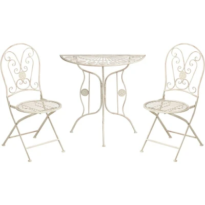 AmazonElegant bistro set with delicate ironwork and vintage finish Includes a compact table and two foldable chairs for space-saving convenience Ideal for smaller gardens, balconies, or patios Combines functionality and charm, offering a cosy spot to relax Perfect for adding style to outdoor spaces, both practical and stylish