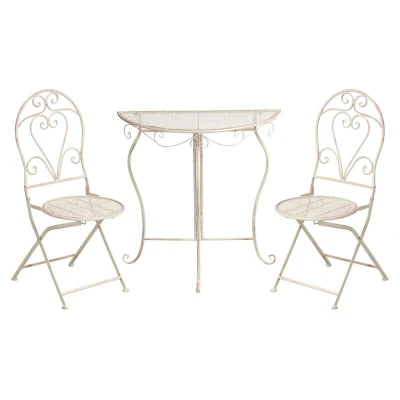 General description This Bistro Set FOLELLI Metal Light Beige is perfect for creating a cozy outdoor retreat, combining practicality with vintage charm. Crafted from sturdy iron with a soft, weathered look, it features two foldable chairs and a space-saving table. The delicate design adds timeless elegance to your balcony or garden, making it an ideal choice for enjoying tea or coffee outside. Technical specifications Product Type: Bistro Set Style: Retro General Color: Beige Shade: Light Beige Main Material: Iron Top Material: Metal Finish: E-Coating Seats Up To: 2 People Chair Dimensions: 40x46x95 cm Coffee Table Dimensions: 80x36x80 cm Seat Height: 44 cm Overall Dimensions: 80x36x80 cm Weight: 13 kg Chair Weight Capacity: 120 kg Table Weight Capacity: 10 kg Installation Partial Assembly Required Estimated Assembly Time: 15 min Usage Light water resistance allows for outdoor use during light rain and humid conditions. If not possible to store indoors, use a cover when not in use.