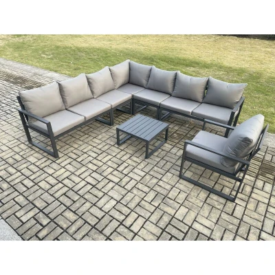 Outdoor Garden Furniture Patio Lounge Corner Sofa Aluminium Set with Square Coffee Table Chair Dark Grey Fimous
