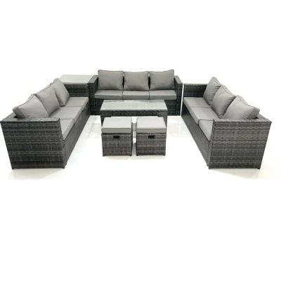 Outdoor Garden Furniture Set 11 Seater Rattan Sofa with Coffee Table 2 Small Footstools Side Dark Grey Mixed Fimous