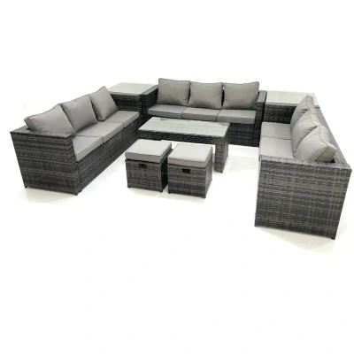 Outdoor Garden Furniture Set 11 Seater Rattan Sofa with Coffee Table 2 Small Footstools Side Tables Dark Grey Mixed Fimous
