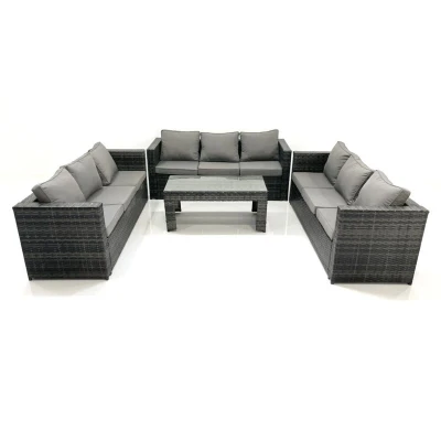 Outdoor Garden Furniture Set 9 Seater Rattan Sofa with Coffee Table Dark Grey Mixed Fimous