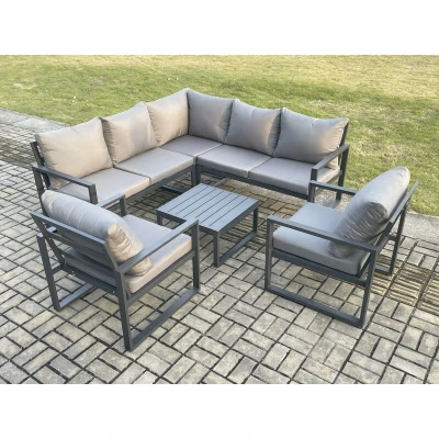 Outdoor Garden Furniture Set Aluminium Lounge Sofa Square Coffee Table Sets with 2 Pcs Chair Indoor Conservatory Dark Grey Fimous