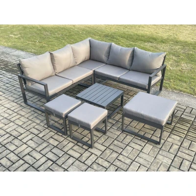 Outdoor Garden Furniture Set Aluminium Lounge Sofa Square Coffee Table Sets with 3 Footstools Indoor Conservatory Dark Grey Fimous