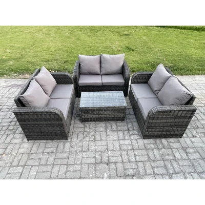 Outdoor Garden Furniture Sets 6 Seater Wicker Rattan Sofa with Rectangular Coffee Table Love Dark Grey Mixed Fimous