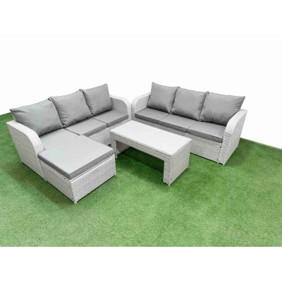 Outdoor Garden Furniture Sets 7 Seater Wicker Rattan Sofa with Oblong Coffee Table high Back Lounge Big Footstool Light Grey