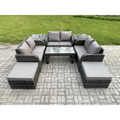 Outdoor Garden Furniture Sets 8 Seater Wicker Rattan Sofa with Rectangular Coffee Table Love seat 2 Big Footstool Side Tables
