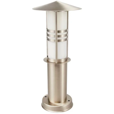 Lights.coBeautiful Erina stainless steel pillar light with glass shade Erina impresses with its modern design and beautiful details. For example, the light is equipped with a kind of silver roof, while three metal strips in the middle join the protective glass shade, creating an elegant look and giving Erina a unique touch. The pedestal light is made of durable stainless steel and can be fitted with E27 bulbs, from classic traditional light bulbs to energy-saving bulbs and advanced LED bulbs.