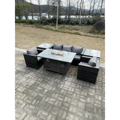 Outdoor Lounge Rattan Sofa Set Garden Furniture Gas Firepit Dining Table Patio Heater 2 Chair Coffee Dark Grey Mixed Fimous