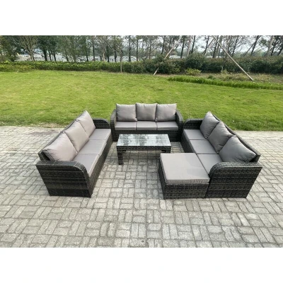 Outdoor Lounge Sofa Set 10 Seater Rattan Garden Furniture with Rectangular Coffee Table Big Footstool 3 Dark Grey Mixed Fimous