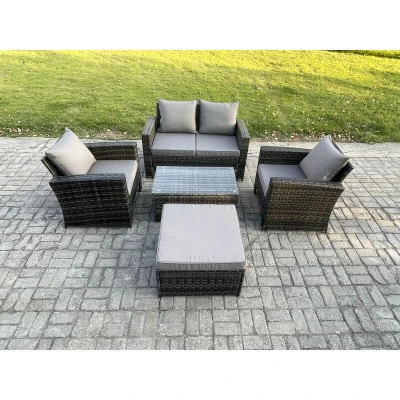 Outdoor Lounge Sofa Set Wicker pe Rattan Garden Furniture with Rectangular Coffee Table Double Seat Big Footstool Dark Grey Mixed Fimous