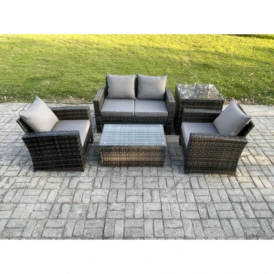 Outdoor Lounge Sofa Set Wicker pe Rattan Garden Furniture with Rectangular Coffee Table Double Seat Side Dark Grey Mixed Fimous