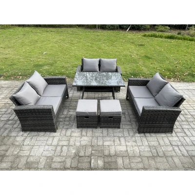 Outdoor Lounge Sofa Set Wicker pe Rattan Garden Furniture with Rectangular Dining Table 2 Seat Small Footstools Dark Grey Mixed Fimous