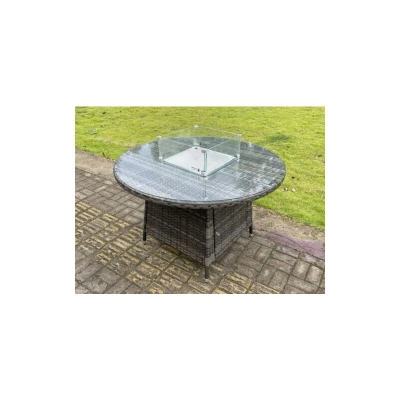 Outdoor pe Mixed Grey Rattan Propane Butane Gas Fire Pit Dining Round Table Heater Burner Garden Furniture Accessory
