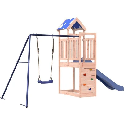 Do you want to give your children the freedom to play at home? This wooden outdoor playset transforms your backyard into a playground for imaginative adventures! Durable material: This garden playset frame is made of solid douglas wood. Douglas wood is known for its strength and durability. Its rich reddish-brown colour and unique grain patterns exude a warm and natural vibe. With good stability and resistance to weathering, it is ideal for crafting indoor and outdoor furniture.Stable wooden frame: The wooden frame of the garden playhouse ensures sturdiness and stability. In addition, the "A" shaped legs of the children's swing allow for balance.Multi-activity centres: The climbing frame features a 90 cm height platform and stands out with its wave slide, a single swing, a rockwall as well as a sandpit. Your little ones can also invite their friends to join the fun.Thoughtful design: The surrounding wooden railings are designed to ensure the safety of children during their happy play. Also, the cloud roof provides shade for your children on hot summer days.Endless fun: This fun-filled wooden outdoor playset is the perfect way for your children and their friends to enjoy entertainment, have more interactive time and make memories for you and your children! Warning:Only for domestic useOutdoor useNot suitable for children under 3 yearsRecommend user age: 3-8 years old