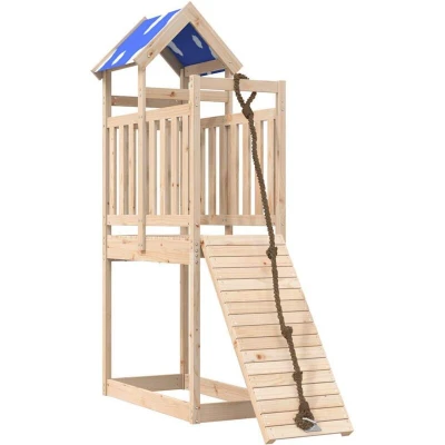 ManoManoGeneral description Do you want to give your children the freedom to play at home? This wooden outdoor playset transforms your backyard into a playground for imaginative adventures! The climbing frame is made of solid pine wood, known for its strength and durability, with straight grains and distinctive knots that contribute to its rustic charm. The wooden frame ensures sturdiness and stability, while the thoughtful design includes surrounding railings for safety and a cloud roof for shade on hot summer days. Technical specifications Overall dimensions: 52.5 x 170.5 x 215 cm (L x W x H) Play tower dimensions: 110.5 x 52.5 x 215 cm (L x W x H) Platform height: 90 cm Climbing wall dimensions: 44.5 x 5 x 108 cm (W x D x H) Maximum per user weight: 45 kg Play tower material: Solid pinewood (untreated) Roof material: Polyester Assembly required: Yes Usage This fun-filled wooden outdoor playset is perfect for children aged 3-8 years, allowing them to enjoy entertainment, have interactive