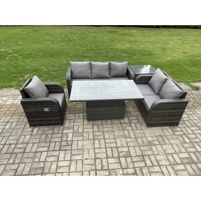 Outdoor Rattan Furniture Garden Dining Set Patio Height Adjustable Rising lifting Table Reclining Chair Sofa With Side Dark Grey Mixed Fimous