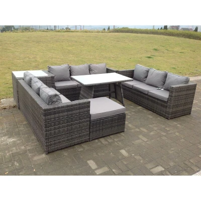 Outdoor Rattan Garden Furniture Lounge Sofa Set With Oblong Dining Table Side Coffee And Big Footstool Fimous