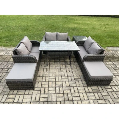 Outdoor Rattan Garden Furniture Lounge Sofa Set With Oblong Rectangular Dining Table 2 Big Footstool Side Fimous