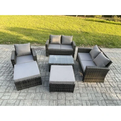 Outdoor Rattan Garden Furniture Set 7 Seater Patio Lounge Sofa with Coffee Table 2 Big Footstool Dark Grey Mixed Fimous