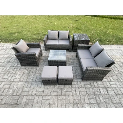 Outdoor Rattan Garden Furniture Set Conservatory Patio Sofa Coffee Table with Chair Side 2 Small Footstools Dark Grey Mixed Fimous