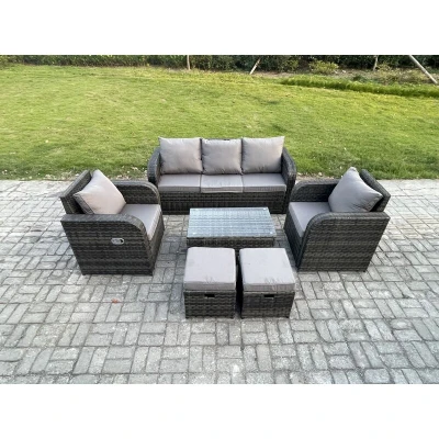 Outdoor Rattan Garden Furniture Set Patio Lounge Sofa with Reclining Chair Rectangular Coffee Table 2 Small Footstool Dark Grey Mixed Fimous