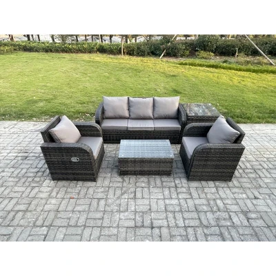 Outdoor Rattan Garden Furniture Set Patio Lounge Sofa with Reclining Chair Rectangular Coffee Table Side Dark Grey Mixed Fimous