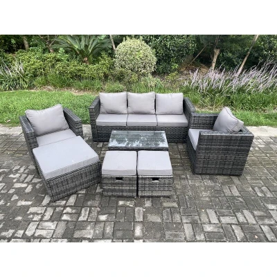 Outdoor Rattan Garden Furniture Set with 3 Seater Sofa Coffee Table 2 Armchairs Footstools Patio Lounge Dark Grey Mixed Fimous