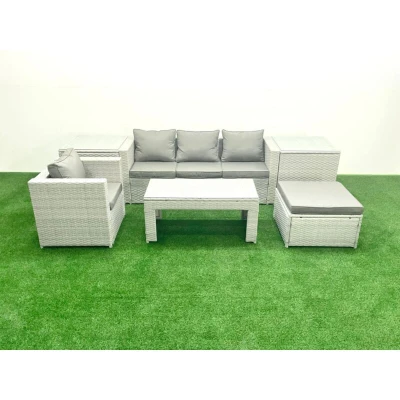 Outdoor Rattan Garden Furniture Set with Grey Cushions Luxury 5 Seater Chair and Coffee Table For Conservatory,Patio Fimous