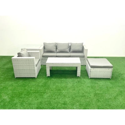 Outdoor Rattan Garden Furniture Set with Grey Cushions Luxury 5 Seater Side Table and Coffee For Conservatory,Patio Fimous