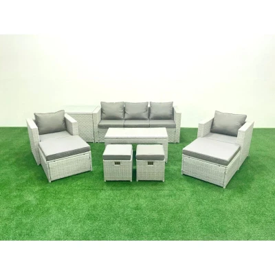 Outdoor Rattan Garden Furniture Set with Grey Cushions Luxury 9 Seater 2 Chairs and Coffee Table For Conservatory,Patio Fimous