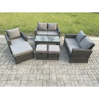 Outdoor Rattan Patio Furniture Set Garden Lounge Sofa with 3 Footstools Coffee Table Dark Grey Mixed Fimous