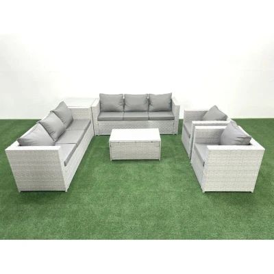 Outdoor Rattan Sofa Garden Furniture Set with 2 Armchairs Oblong Coffee Table Side Light Grey Mixed Fimous