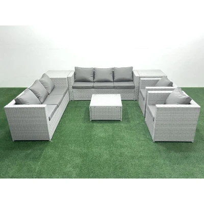 Outdoor Rattan Sofa Garden Furniture Set with 2 Armchairs Square Coffee Table Side Tables Light Grey Mixed Fimous