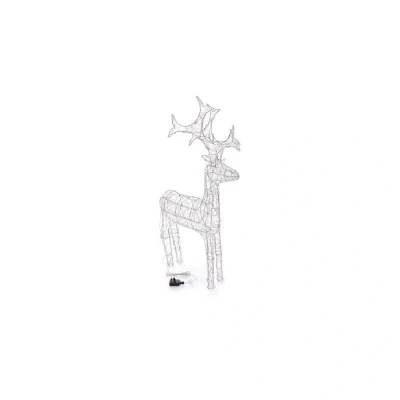 General description The Kaemingk Indoor and Outdoor Reindeer is a stunning decoration that brightens up any space during the Christmas season. This modern acrylic light-up ornament is designed for both indoor and outdoor use, provided the transformer is kept in a dry environment. It serves as a perfect addition to your front garden or under the Christmas tree, enhancing your festive decor. Technical specifications Height: 90 cm Lead cable length: 8 m Light source: LED energy-saving bulbs Power consumption: Uses 90% less power than standard bulbs Lifespan: Up to 60,000 hours Available LED colors: Cool White or Warm White Sizes available: 60 cm, 90 cm, and 120 cm tall