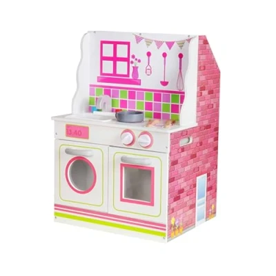The little ones in the house will have a great time as they learn and share moments with friends and family playing with this kitchen house The kitchen has an oven, washing machine, tap and hob, all fictional for little ones to develop their imagination; a frying pan and two wooden spoons are included By inverting it is a dollhouse with a living room with kitchen, a beauty centre and a veterinary clinic Made with MDF painted with eco-friendly full-color paints to stimulate your children's senses You can place it in the children's room or in the playroom. In addition, its assembly is quick and easy to store when needed, Manufacturer: Kovyx