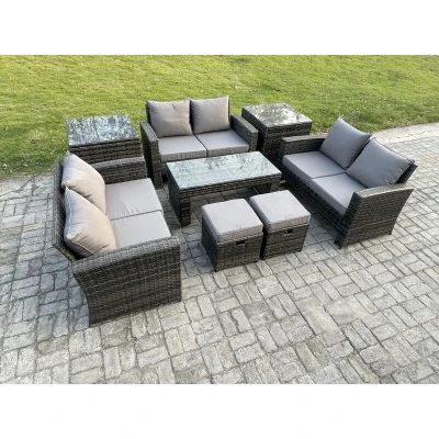 Outdoor u Shape Sofa Set Wicker pe Rattan Garden Furniture with Coffee Table Double Seat 2 Small Footstools Side Tables Dark Grey Mixed