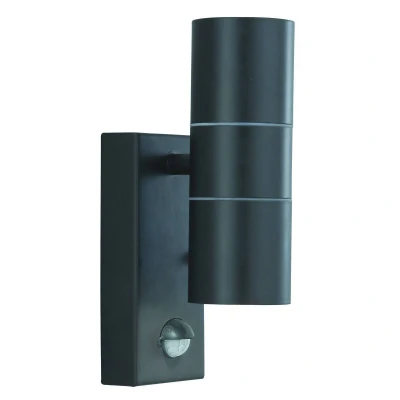 Outdoor Up Down Wall 2 Light Black Cast Aluminium with Motion Sensor IP44, GU10