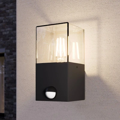 Outdoor Wall Light 'Keke' dimmable with Motion Detector (Modern) in Black Made of Aluminium (1 Source, E27) from Lucande lamp for Exterior/Interior Walls, House, Terrace und Balcony