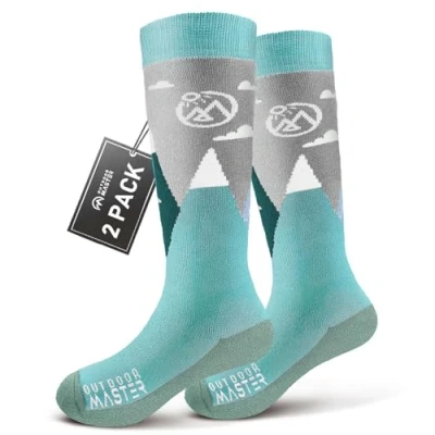 OutdoorMaster Kids Ski Socks Merino Wool Snowboard Socks, Thermal with OTC Design,Knee High Warm for Outdoor Winter Sports 2 Pairs