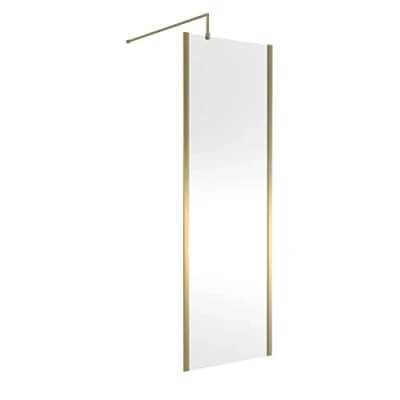 Outer Framed Brushed Brass Wetroom Screen with Support Bar 700mm w x 1950mm h 8mm Glass Hudson Reed