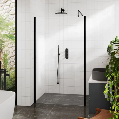 General description Hudson Reed Outer Framed Matt Black Wetroom Screen is designed to enhance your bathroom with a modern touch. This stylish wetroom screen features a sleek matt black finish and is made from 8mm toughened safety glass, ensuring both durability and elegance. It is supplied complete with a wall channel, decorative profile undrilled, and a support bar with a T piece for the support arms. Technical specifications Glass Style: Clear Glass Thickness: 8mm Glass Height: 1950mm Glass Width: 1000mm Adjustment Range: 975 - 993mm Profile Material: Aluminium Profile Finish: Matt Black Weight: 45.09 Kg Brand: Hudson Reed Collection: Outer Framed Style: Modern EAN Barcode: 5056462638157 Manufacturer Part Number: WRSOBP10 Other information Single-sided 'Shower Shield' coated glass for easy cleaning Lifetime guarantee against faulty workmanship or materials (1 year on serviceable and moving parts) During installation, extra care must be taken to avoid damaging the fittings