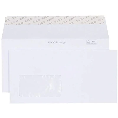 The ELCO Prestige C5/6 envelope in white combines elegance and functionality. With its high-quality, bright white paper (120 g/m²) and practical self-adhesive closure, it provides an excellent basis for a professional appearance. The window on the front left provides a clear view of your address and adds extra style to the envelope. Ideal for sophisticated business correspondence, this envelope supports your company's high-quality image right from the start. Choose ELCO Prestige to give your letters an elegant and stylish look. This envelope stands for first-class Swiss quality with its FSC certification. The window measures 90 x 45 mm and is positioned on the front left side (15 mm from the bottom edge and 119 mm from the right edge).
